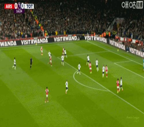 第36分钟,接梅里诺传球后,特罗萨德潇洒转身射门得手,阿森纳1-0领先!