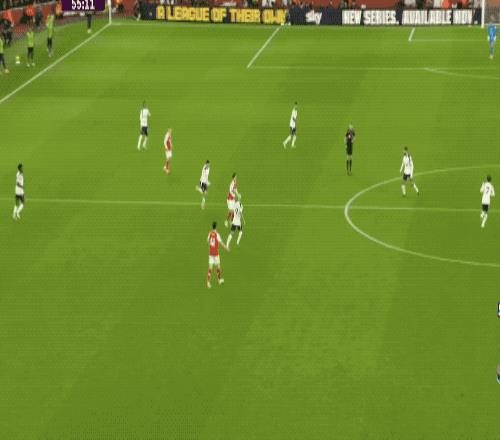 第55分钟,帕利尼亚中圈附近铲断苏维门迪,理查利松起脚吊射,热刺的第一次射门就转化为了进球。