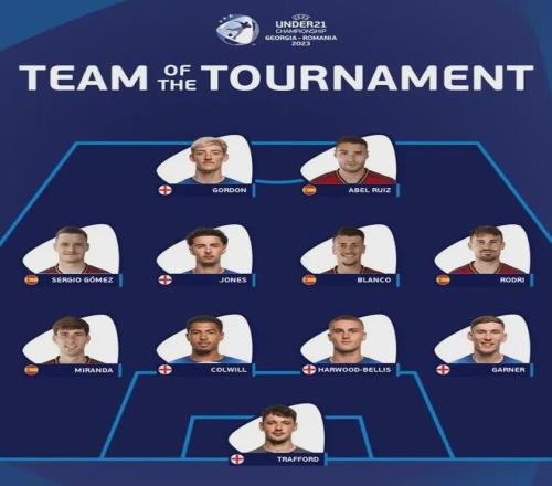 2023年夏天,他迎来了职业生涯至今的最高光时刻——随英格兰U21国家队征战欧青赛。他是球队夺冠的重要功臣,更凭借在整个赛事中的稳定发挥,以右后卫的身份入选了赛事官方最佳阵容。这座沉甸甸的奖杯,是对他坚持与才华的最佳奖赏。