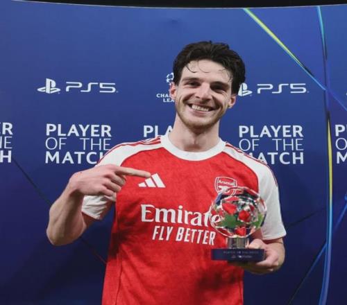 官方:赖斯被阿森纳票选为了全场比赛最佳球员!