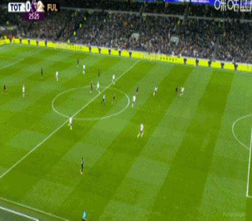 第59分钟,库杜斯禁区右路得球爆射破门,热刺1-2富勒姆