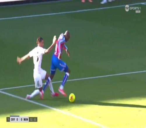 但曼联的好运并未持续太久,在比赛第 36 分钟,场上局势发生关键转折。约罗在禁区边缘位置,从身后撞向正在持球推进的马特塔,他的法国同胞瞬间失去平衡倒地,主裁判毫不犹豫指向点球点,马特塔得到了自我救赎的绝佳机会。