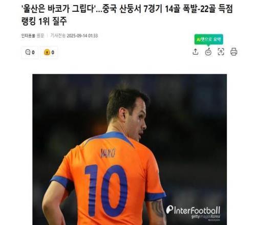 第二个,韩国媒体的反应耐人寻味。“NAVER”等多家媒体纷纷报道,称蔚山球迷非常想念瓦科。要知道,蔚山现代在他离开后战绩一落千丈,最近16场比赛只赢下1场,联赛排名跌至倒数第5。看到瓦科在中超连续爆发,蔚山球迷自然心里不是滋味,很多人直呼“放走他是巨大错误”。