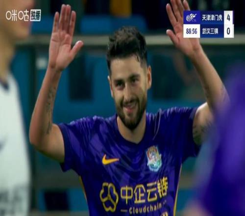 另外一场比赛中,天津津门虎主场迎战武汉三镇。上半场第29分钟,哈达斯助攻王秋明头球冲顶破门,天津津门虎1-0打破僵局。补时阶段,津门虎利用角球机会,罗斯头球后蹭助攻基莱斯铲射破门,津门虎半场2-0领先。下半场易边再战,直到第73分钟,阿代米边路突破后回做,哈达斯禁区外远射弹地破门,津门虎将比分扩大为3-0。尾声阶段哈达斯再入一球完成梅开二度,最终津门虎4-0大胜三镇。