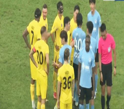 回看慢镜头之后,主裁判判罚点球,并且向杜加里奇示意其手臂阻挡了球。然而,新鹏城球员非常不满,长时间围住主裁判争辩。