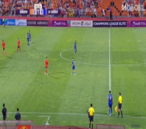第45+1分钟,高天意边路任意球快开直塞左路,特谢拉内切兜射破门!申花1-0领先江原↓