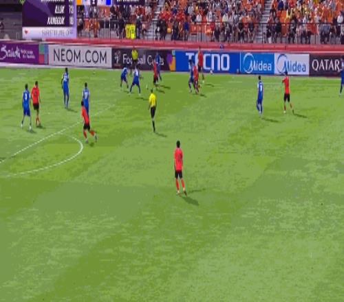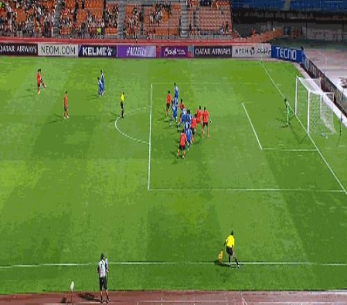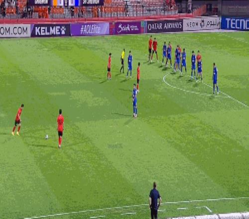 第65分钟,江原FC再一次从右路发动进攻取得进球,边路完成二过一击穿申花防线后,江原FC中路接倒三角传球后的射门被封堵,随后在小禁区内的具本哲抢射破门,帮助球队以2-1反超比分。