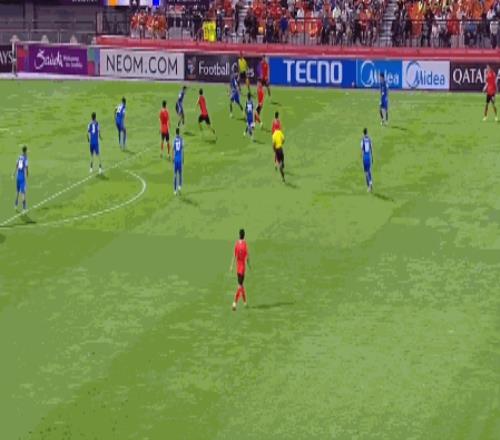 第55分钟,江原FC刚刚完成换人就取得了进球。这一次申花后防出现漏洞,江原FC从右路传中,70号具本哲中路直接将球过渡给左边后插上的洪喆,后者在无人盯防的情况下抽射远角得手,帮助球队1-1扳平比分。