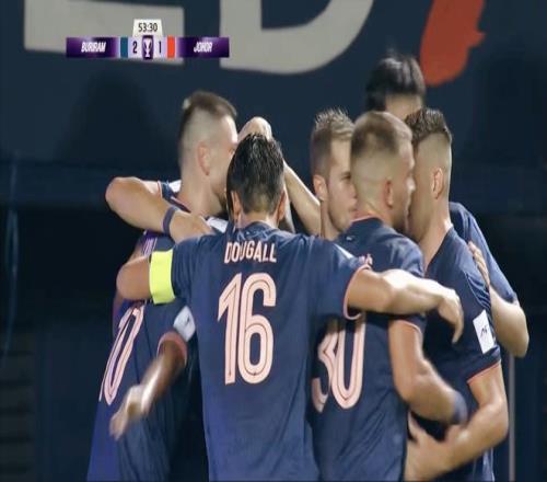 第27分钟,一波接着一波的攻势,终于收获成效!柔佛新山角球罚到禁区,伊拉萨瓦尔的头球被扑出,跟上的格劳德补射破门,0:1!随后武里南联也打出精彩反击,祖利插上头球击中立柱弹出。