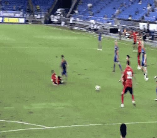 蔚山现代很快还以颜色,第8分钟,接到队友的横传,马尔康腾空而起,将球打偏。