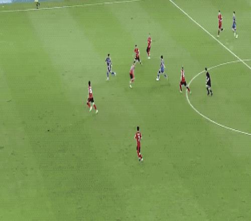 下半场开始不到2分钟,主裁判突然叫停比赛,VAR介入,慢镜头可以看到,在防守过程中莱切特疑似手球。裁判回看过后认为没有违例,没有点球。