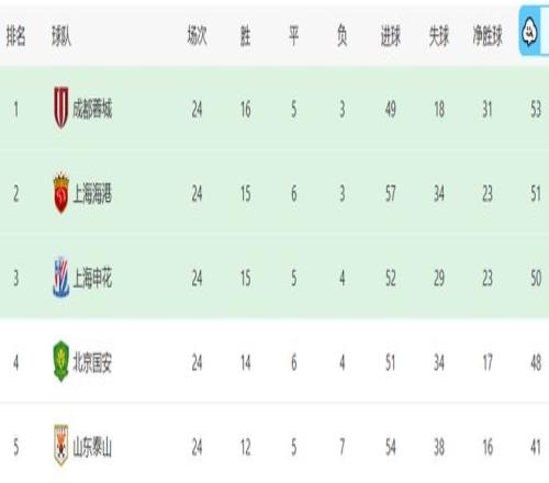 前面24轮中超战罢,上海海港15胜6平3负,积51分,落后榜首成都蓉城2个积分,暂时排在中超积分榜的第二位。考虑到中超还剩6轮比赛,上海海港依旧有很大希望能够问鼎本赛季的中超冠军。