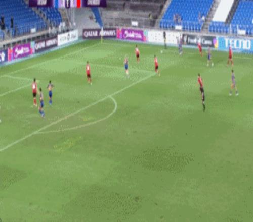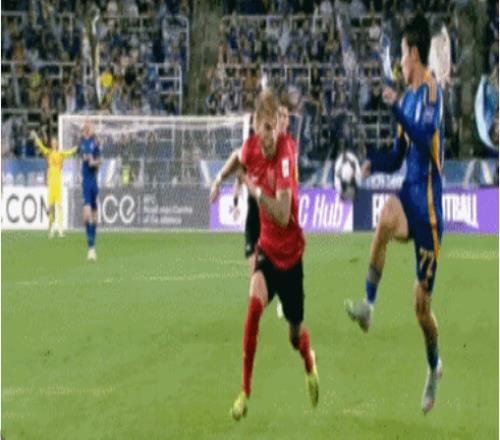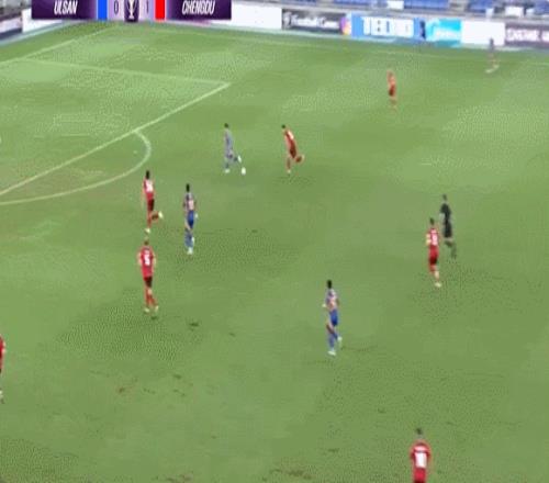 很快,蔚山HD进行了还击,一次快速反击冲击成都蓉城的后防线,马尔康前插到禁区内飞身凌空打门滑门而过,差一点直接破门。