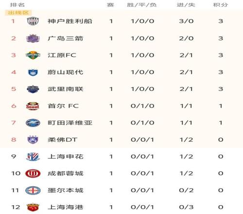 北京时间9月17日,随着第二个比赛日2场比赛顺利进行,新赛季亚冠精英联赛东亚区首轮比赛全部结束。首轮过后的积分榜,3支中超球队全军覆没无缘前8,主场惨败的上海海港垫底,5支取得首胜球队同积3分。