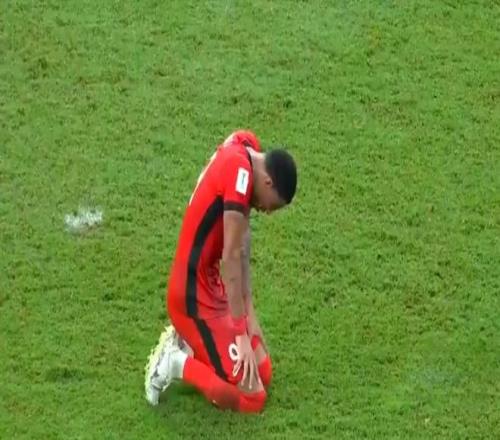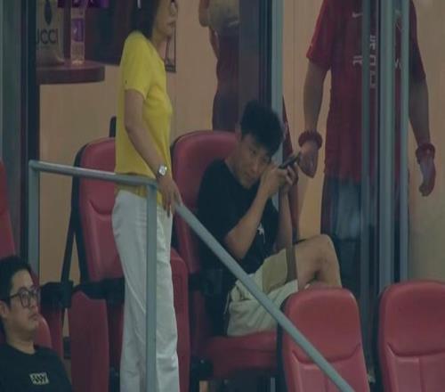 当上港0比3落后的时候,导播把镜头对准了坐在看台上的武磊。只见这位上港前锋在看着手机忙着听语音,不知道听的是不是关于球队比赛的内容。赛后,失望的上港外援古斯塔沃直接跪在草坪上。