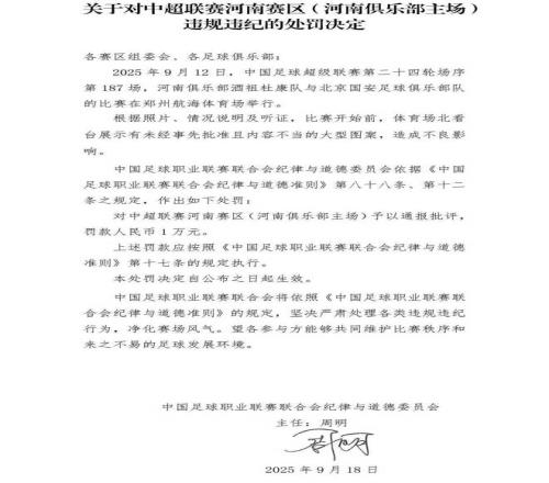 值此之际,中足联官方发出通告,对河南赛区作出处罚!