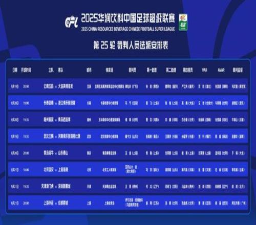 刚刚,中超联赛官方公布了中超第25轮裁判选派安排表。由于本轮联赛积分榜前4的球队捉对厮杀,将对争冠形势产生巨大影响,因此足协再一次安排两名外籍裁判执哨。