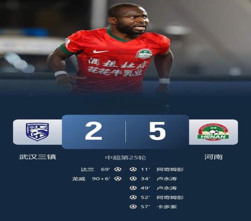 武汉三镇最后20分钟顽强攻入2球,将比分改为2-5。