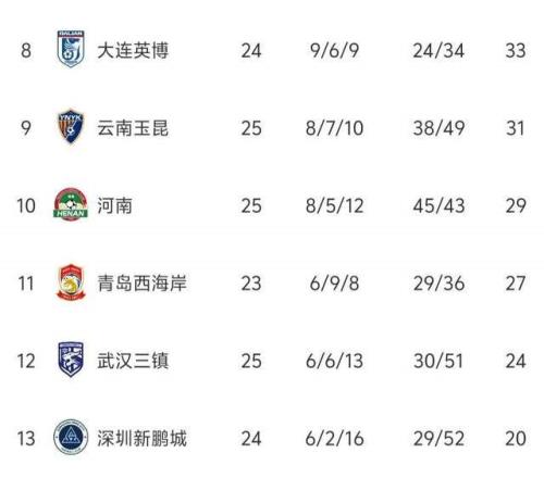 大连英博积33分排在第8,云南玉昆以2分之差排在第9,双方也都是提前保级成功,对于两支升班马来说,非常不容易。