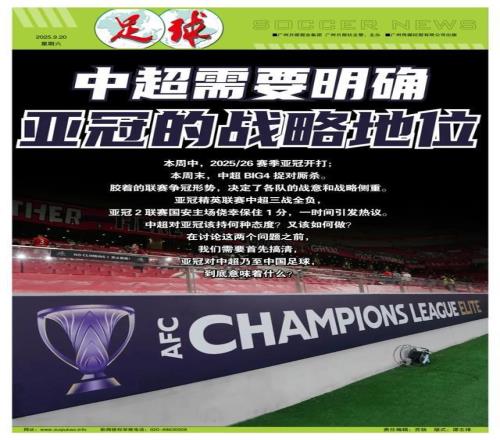 撰稿/寒冰 9月16日,2025/26赛季亚冠开打。恰逢同个周末,中超BIG4捉对厮杀,胶着的联赛争冠形势,决定了各队的战意和战略侧重。亚冠精英联赛中超三战全负,亚冠2联赛国安主场侥幸保住1分,此种局面,既在情理之中,也在意料之内。