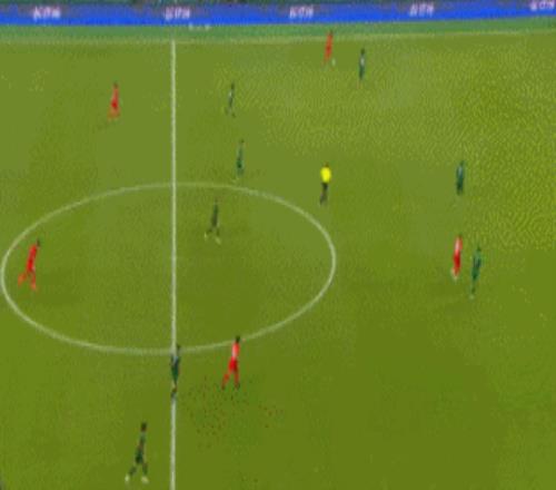 当然北京国安有他们特别虚弱的地方,就是他们的外援都在中路,两翼并没有给上海海港施加太多的压力。
