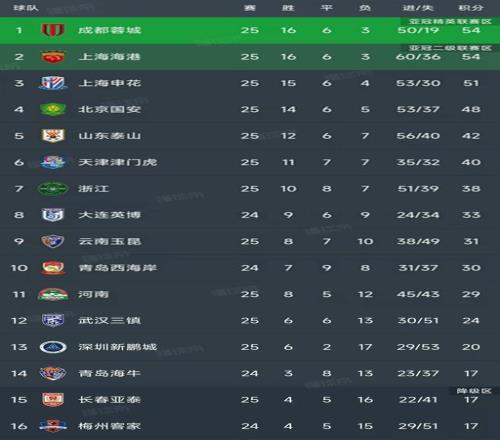 北京时间9月22日,中超第25轮结束了所有比赛,最新积分榜如下!