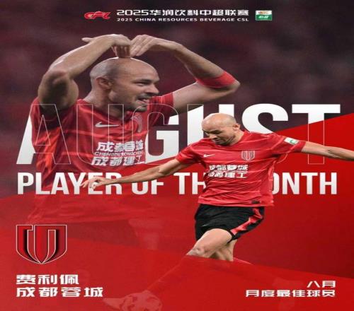 直播吧9月25日宣 中超联赛官方消息,成都蓉城外援费利佩当选8月联赛最佳球员。