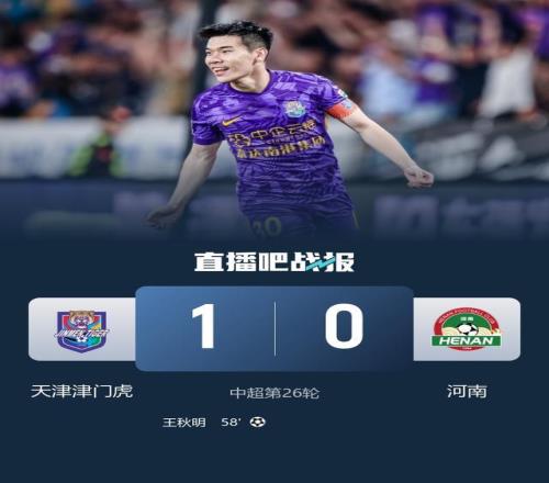 直播吧9月28日宣 北京时间9月28日晚上19:00,中超第26轮,天津津门虎坐镇天津奥体中心迎战河南。上半场,基莱斯越位干扰进球被吹无效,巴顿伤退。下半场,王国明送礼王秋明破门。全场结束,天津津门虎1-0河南。本场过后,天津津门虎积43分暂升至积分榜第5,河南积29分排名第11。