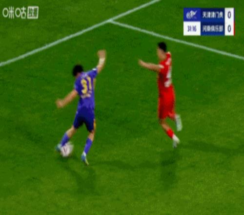 第17分钟,孙铭谦左路横扫门前碰到河南后卫,基莱斯门前干扰下皮球滚进大门,但是基莱斯越位在先,进球无效。↓