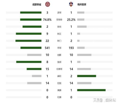 3、成都蓉城击败梅州,改写历史交锋战绩为9胜2平1负,同时对梅州客家5连胜。