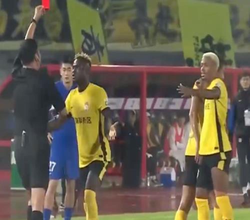 西海岸的外援阿齐兹连忙过来,想把张呈栋赶紧拉走。但是,他根本拉不走已经暴怒的张呈栋。在被张呈栋骂了好几句后,主裁判实在受不了了,直接向其出示红牌,将其罚出场外。