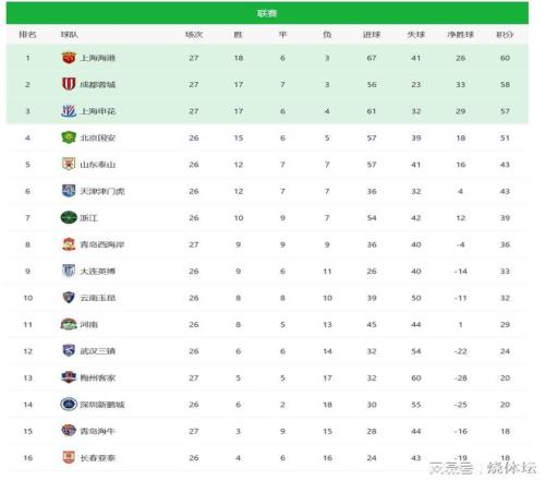 北京时间10月17日晚,2025赛季中超联赛,第27轮先战三场。本轮成都蓉城主场战胜梅州客家,上海申花客场小胜青岛西海岸,而上海海港也在青岛击败海牛拿到3分。