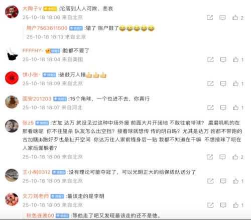 半程还是冠军,却在还剩3轮情况下冠军基本梦碎。或许是无法接受如此残酷的结果,赛后愤怒的国安球迷,涌至俱乐部官微刚发布的本场输球的战报下面,愤怒留言表达自己的不满。