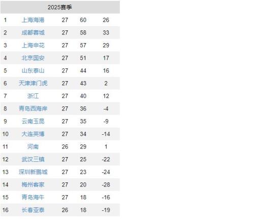 目前积分榜上,上海海港仍以2分领跑,成都蓉城继续位居第2名,而同样赢球的上海申花则是继续排名第3,在落后榜首3分的情况下,这三支球队都有夺冠可能,而北京国安在不敌深圳新鹏城,落后上海海港9分的情况下,已经退出争冠集团。