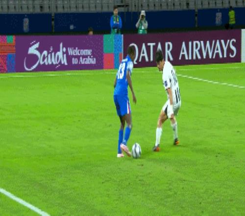 第26分钟,马纳法突破被金珍洙踩踏放倒,裁判向金珍洙出示一张黄牌。