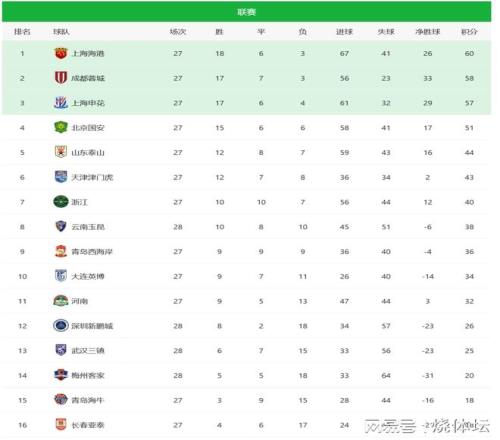 本轮深圳新鹏城客场战胜武汉三镇,总积分提升到26分,排名超越武汉三镇升至12位。深圳新鹏城领先降级区8分,对青岛海牛、长春亚泰相互战绩都占优。