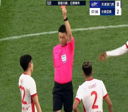 易地再战,第58分钟,王禹飞铲铲到了哈达斯脚踝,主裁判先是出示黄牌,VAR介入,改为红牌。长春亚泰少打一人!