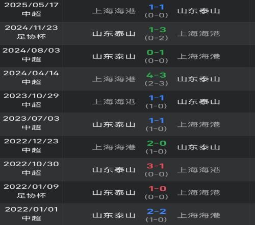 而在中超赛场,双方近10场交手,泰山3胜4平3负,双方势均力敌。不过,泰山的3场胜利相对遥远,分别发生在2019年、2021年和2022年。