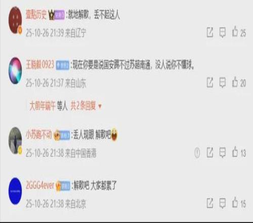 有球迷直言:解散吧,大家都累了。看到这条平淡而无奈留言时,不由的心疼北京国安的球迷。