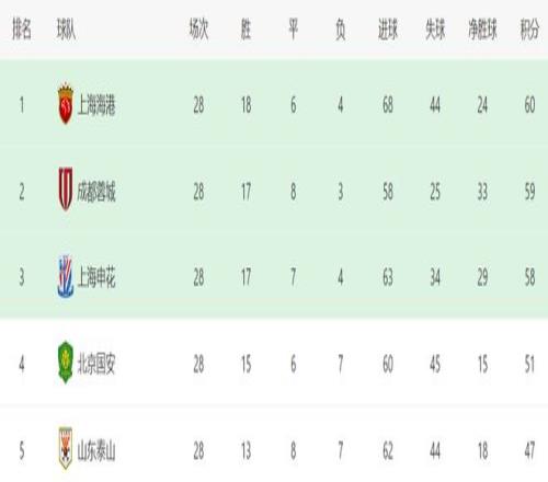 赛前积分榜,上海海港积60分高居第一,成都蓉城积59分位列第二,上海申花积58分排名第三,三队只有2分的差距,争冠非常激烈。