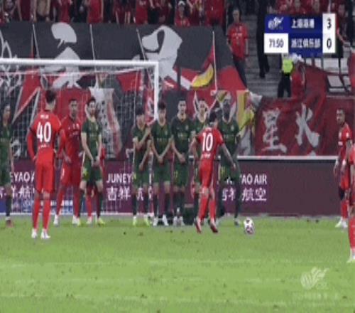 第71分钟,海港获得前场定位球机会,维塔尔操刀,他的射门画出一道美妙弧线直奔浙江队大门的右上死角,对方门将赵博鞭长莫及,这粒进球也让海港基本将三分收入囊中。