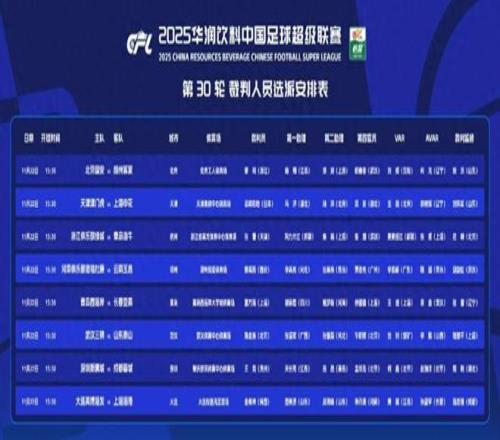 另外,两场还有保级悬念的比赛,由国内裁判担任主裁,其中张雷执哨浙江队vs海牛,邢琦会担任国安vs梅州主哨。