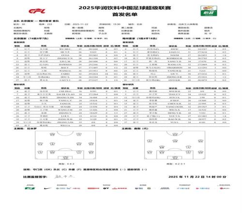 北京时间11月22日15:30,中超第30轮同时开战,北京国安坐镇北京工人体育场迎战梅州客家,本场主裁判为邢琦,VAR裁判为刘威,赛前双方首发出炉。