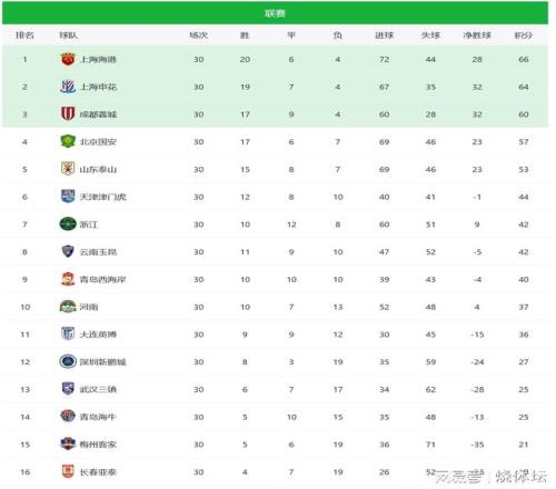 中超联赛积分榜