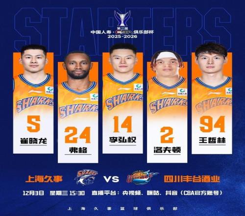12月3日,南昌国际体育中心。第二届CBA俱乐部杯战幕拉开,卫冕冠军上海久事男篮以一场酣畅淋漓的111比72大胜,击败四川丰谷酒业队,强势开启B组小组赛征程。全队12人轮换、7人得分上双的团队表现,展现出“大鲨鱼”志在卫冕的决心与深厚阵容底蕴。