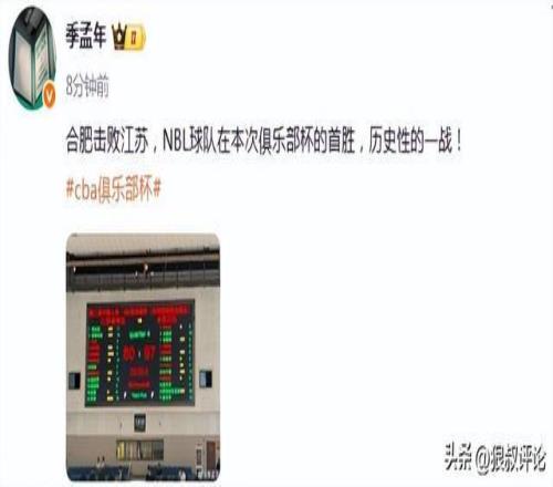 媒体人“季孟年”发文点评“合肥击败江苏,NBL球队在本次俱乐部杯的首胜,历史性的一战!”。