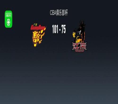 北京时间12月6日CBA俱乐部杯,广东东阳光对阵江苏肯帝亚。半场广东55-40江苏,最终广东101-75江苏。广东东阳光;江苏肯帝亚。