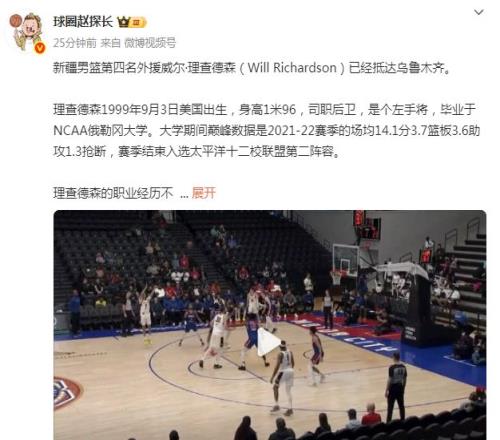 如今根据媒体人球圈赵探长报道:“新疆男篮第四名外援威尔-理查德森已经抵达乌鲁木齐。”威尔-理查德森将成为新疆男篮的第四外援,球队也将继续以四外援阵容去出战新赛季的CBA。