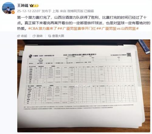贾磊:“山西队在CBA历史上首个潜力赛上以27-24战胜广厦,赢得了CBA潜力赛历史首胜!张宁、赵岩昊悉数登场,山西队老将葛昭宝也获得了宝贵的出场机会。”