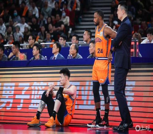 上海男篮首发阵容为王哲林、李添荣、李弘权及双外援洛夫顿、古德温。